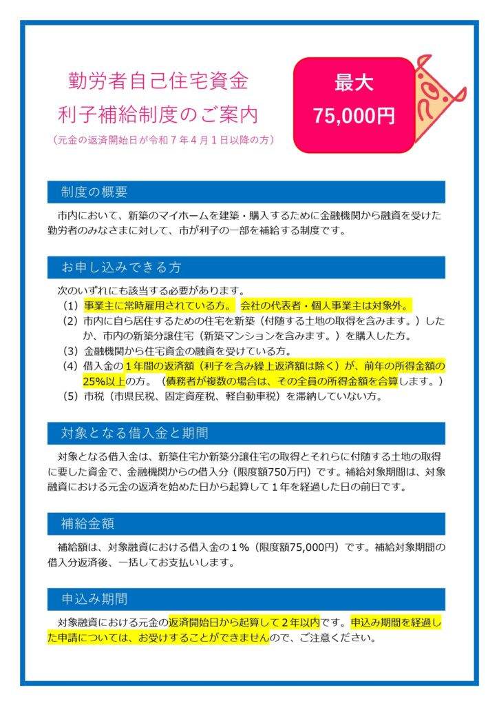 また、津幡町から定住促進事業として住宅取得奨励金もあります。