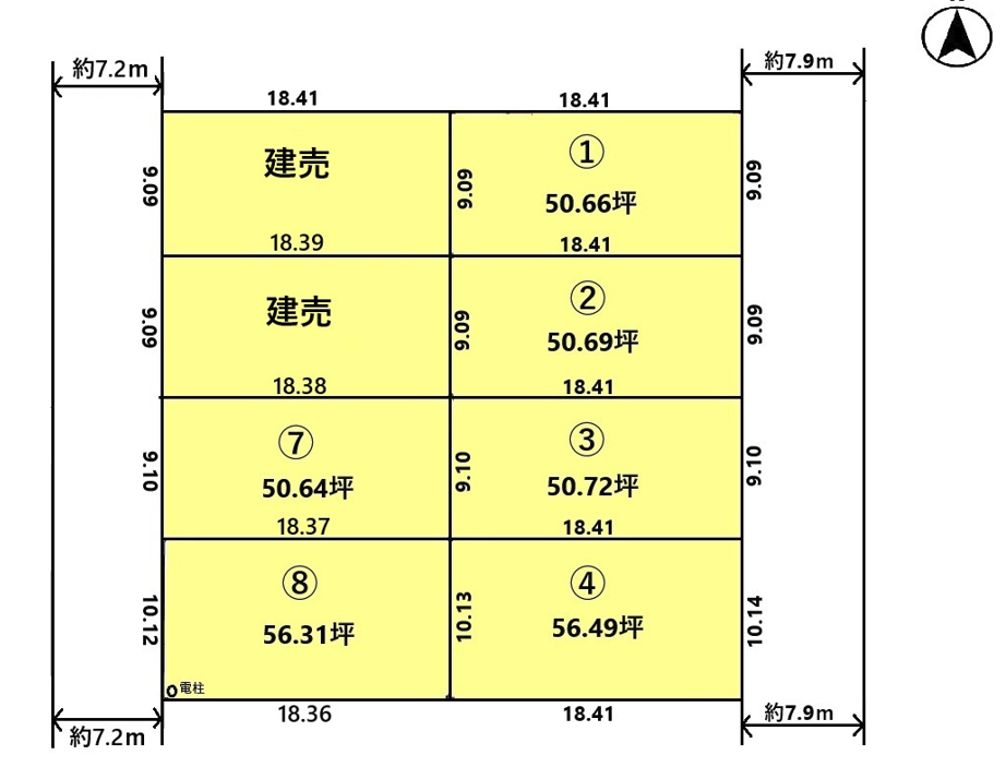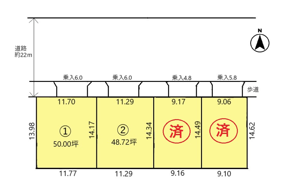 ②45.22坪(149.50㎡)@38.5万・・・1740.9万円+負担金66万円=1806.9万円(建築条件なし)