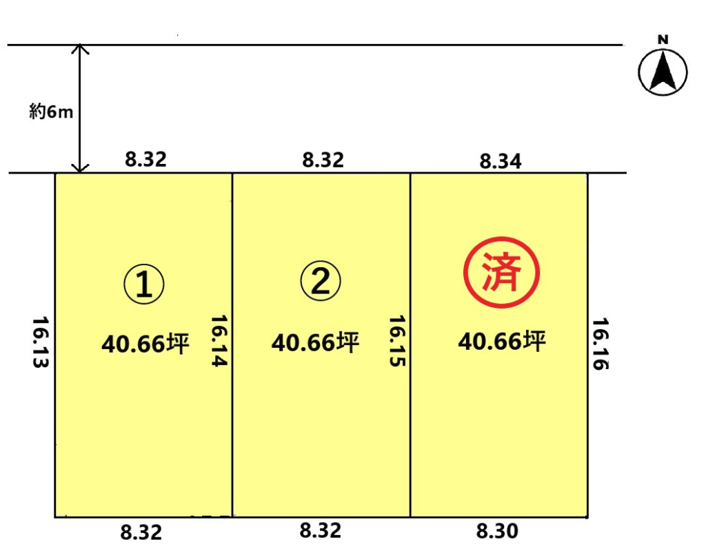 ③44.46坪(146.98㎡)@38.5万・・・1711.7万円+負担金66万=1777.7万円(建築条件なし)