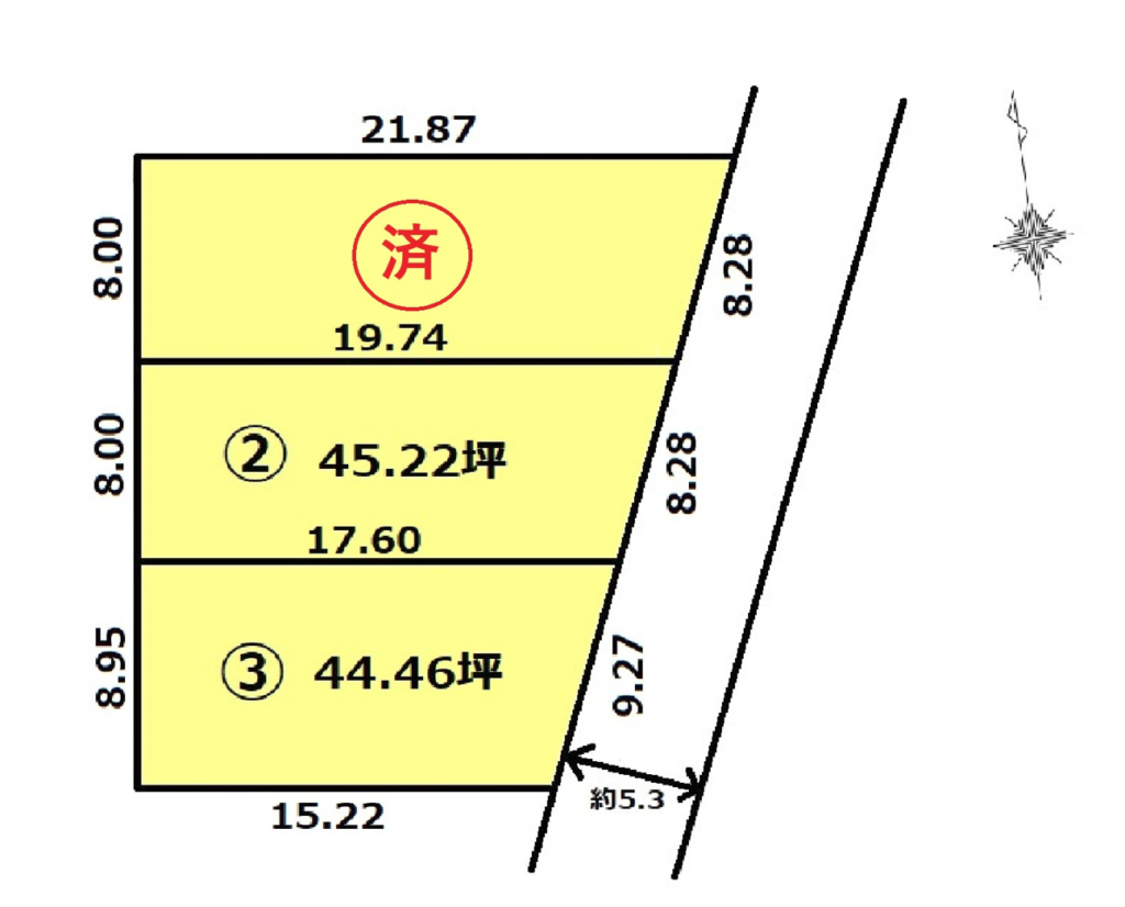 ⑤44街区3 53.42坪(176.61㎡)@33.0万円 1762.8万円+負担金77万円=1839.8万円(条件付き)