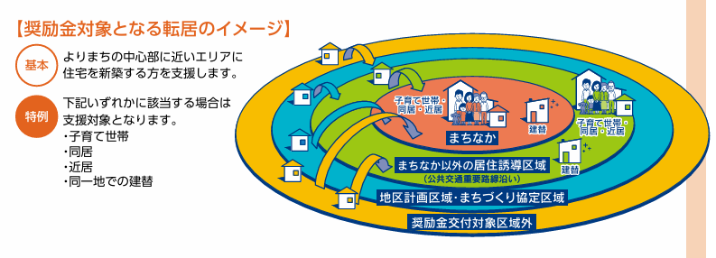 条件によりますが、「まちなか」であれば最大200万円、「居住誘導区域」では最大100万円の奨励金が交付されます。