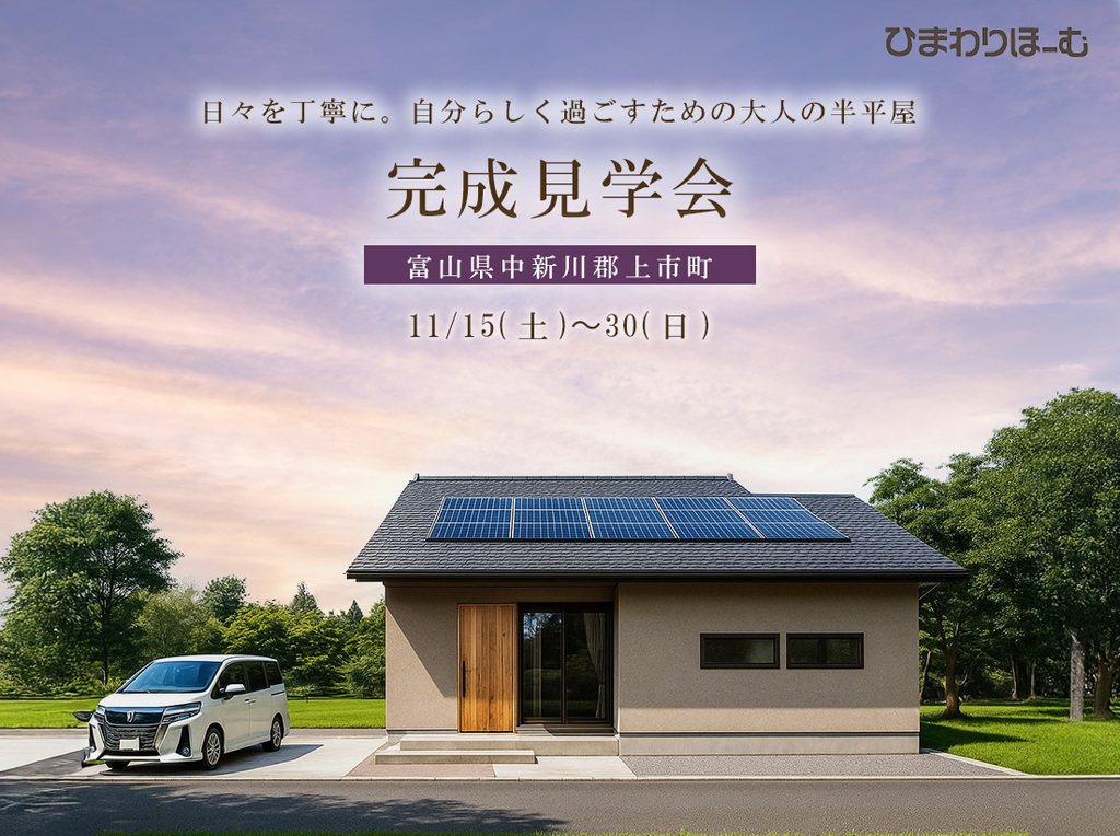 - 《富山県中新川郡》日々を丁寧に。自分らしく過ごすための半平屋開催日 : 11/15(土)〜11/30(日)場所 :富山県中新川郡上市町法音寺