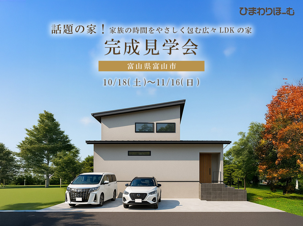- 《富山県富山市》話題の家!家族の時間をやさしく包む広々LDKの家開催日 : 10/18(土)〜11/16(日)場所 :富山県富山市二俣新町