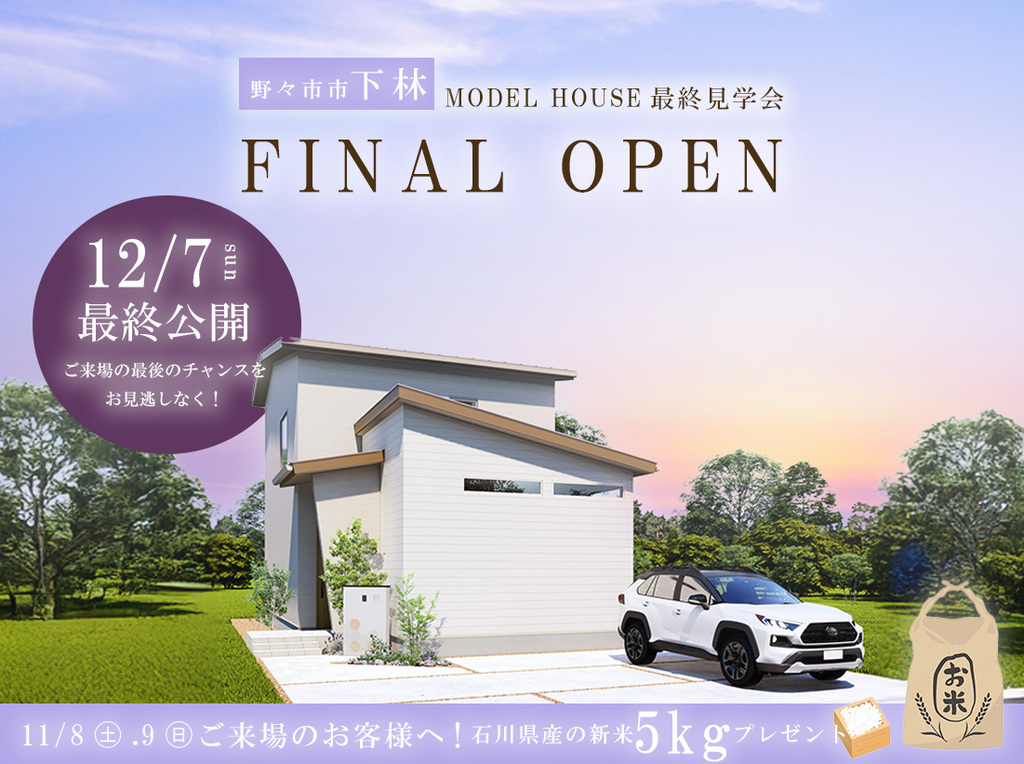 - 《石川県》構造も性能も“見える化”された家づくり体感館開催日 : 〜開催中場所 :石川県金沢市新保本4-66-6