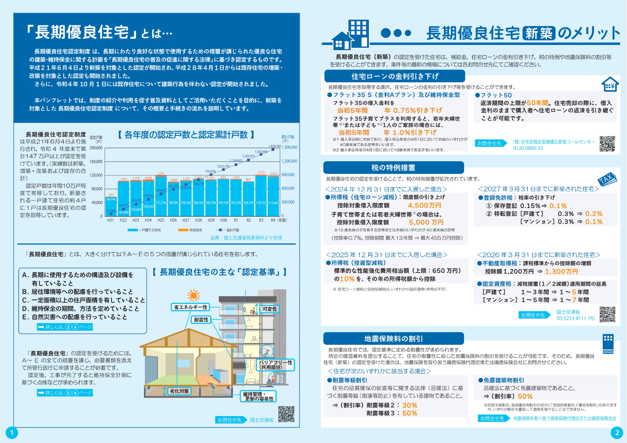 ひまわりほーむの建物は全棟長期優良住宅・性能表示住宅です。永く安心して快適に暮らせる家として平成21年(2009年)にスタートした『長期優良住宅認定制度』の基準をクリアした家です。