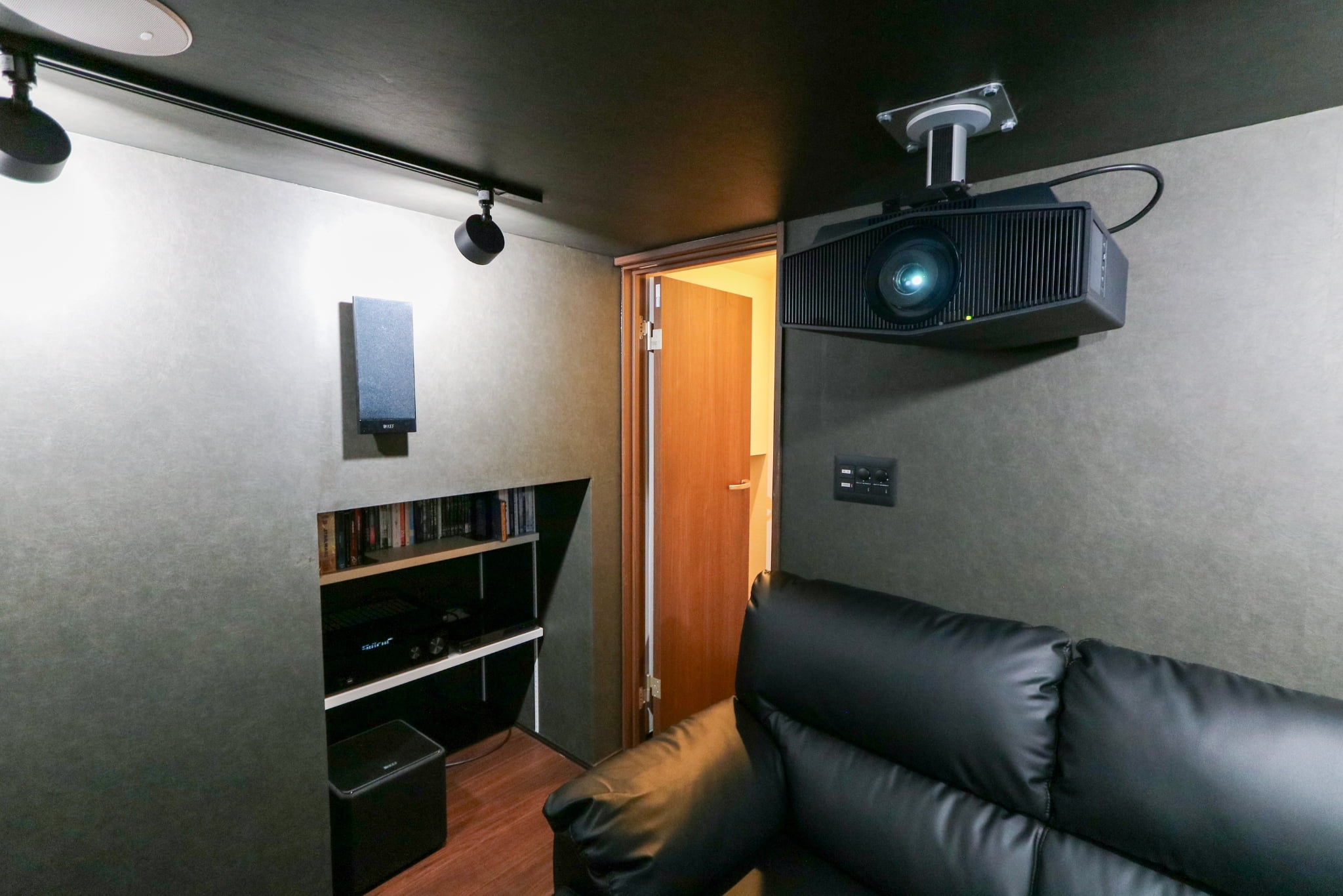 ご家族で籠って過ごすことのできるシアタールーム。照明やサウンドシステムにもこだわり、趣味を思う存分満喫できる遊び心満載のスペースを造りました。