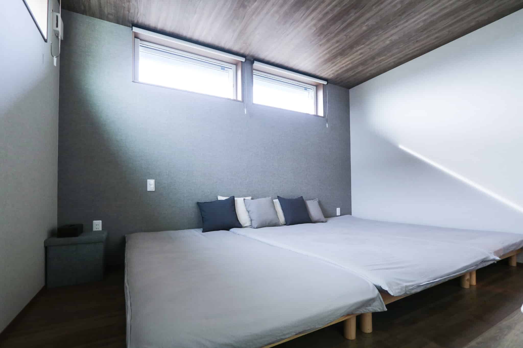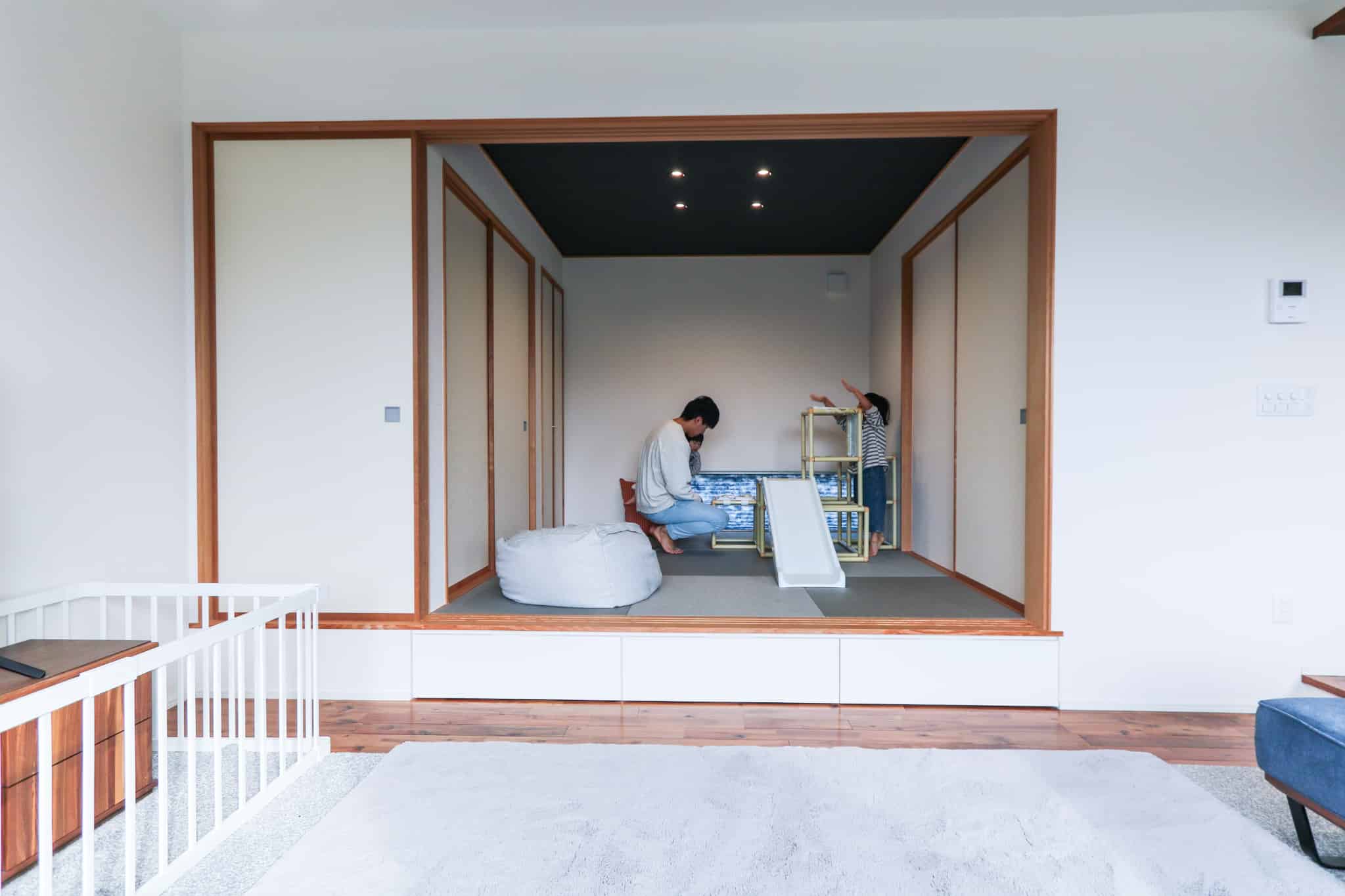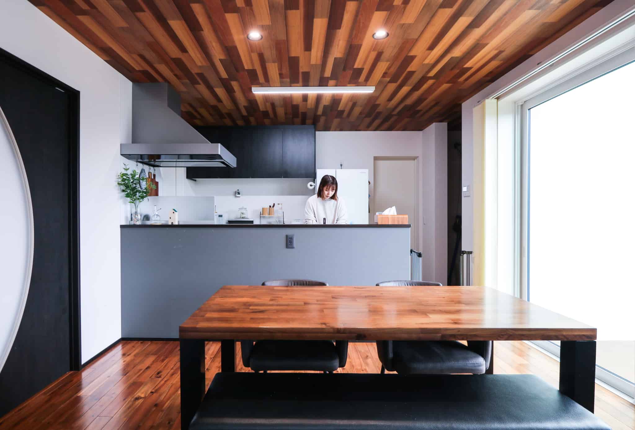 奥様 : 壁紙のこだわりが強く、特にレッドシダー天井がとても気に入っています。
