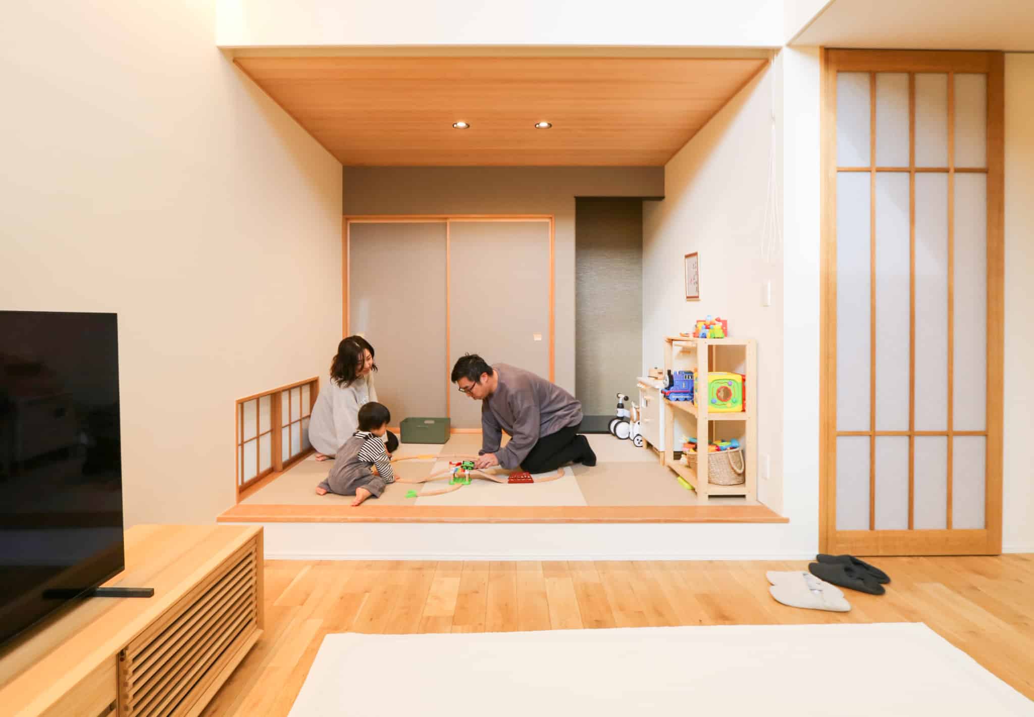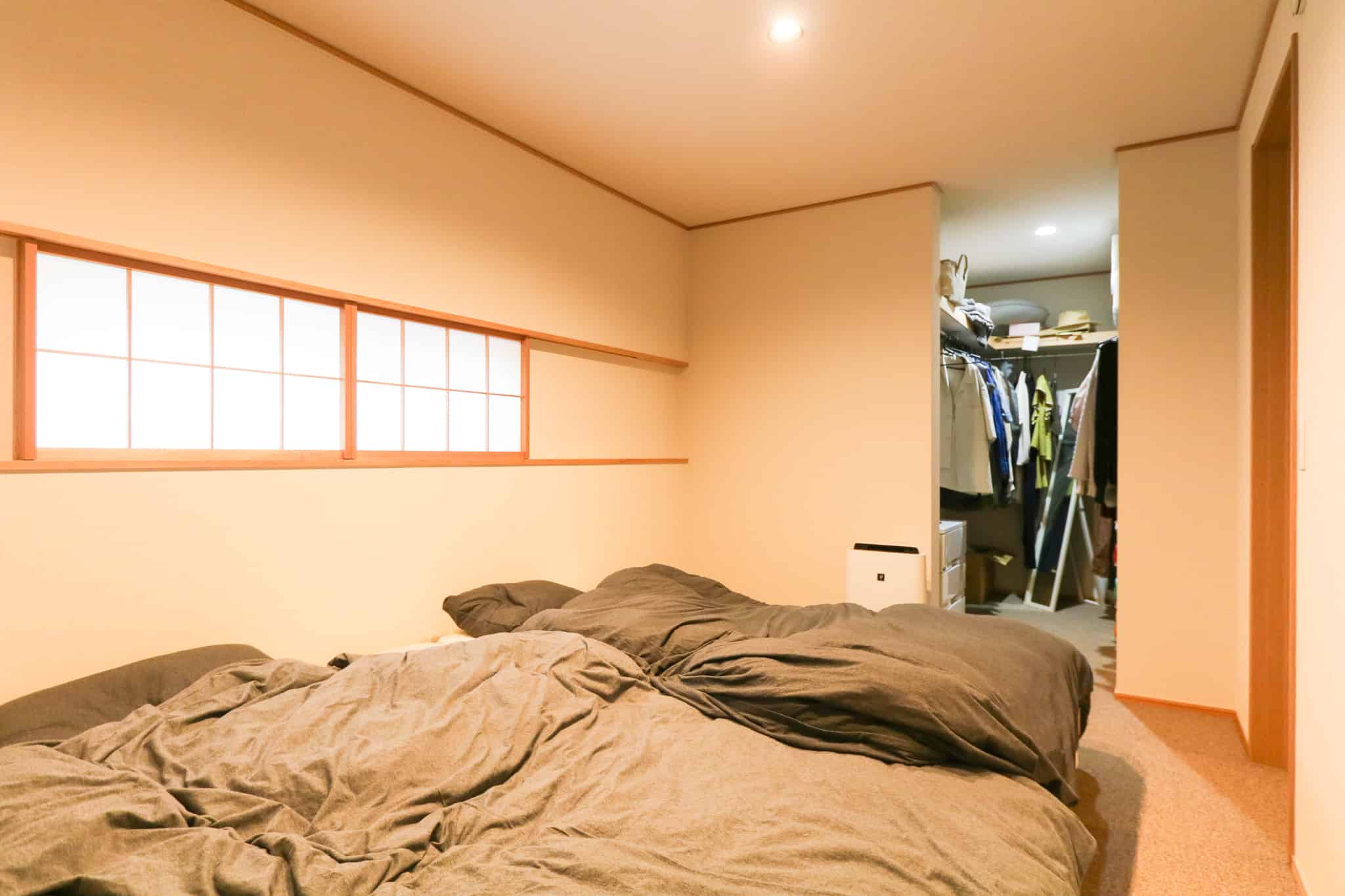 奥様 : 歳を重ねても居心地の良い空間になるよう、シンプルで温かみのある家にこだわりました。開放感のある高天井のリビングや寝室のカーペットフロア、所々に使った障子の雰囲気も気に入っています。
