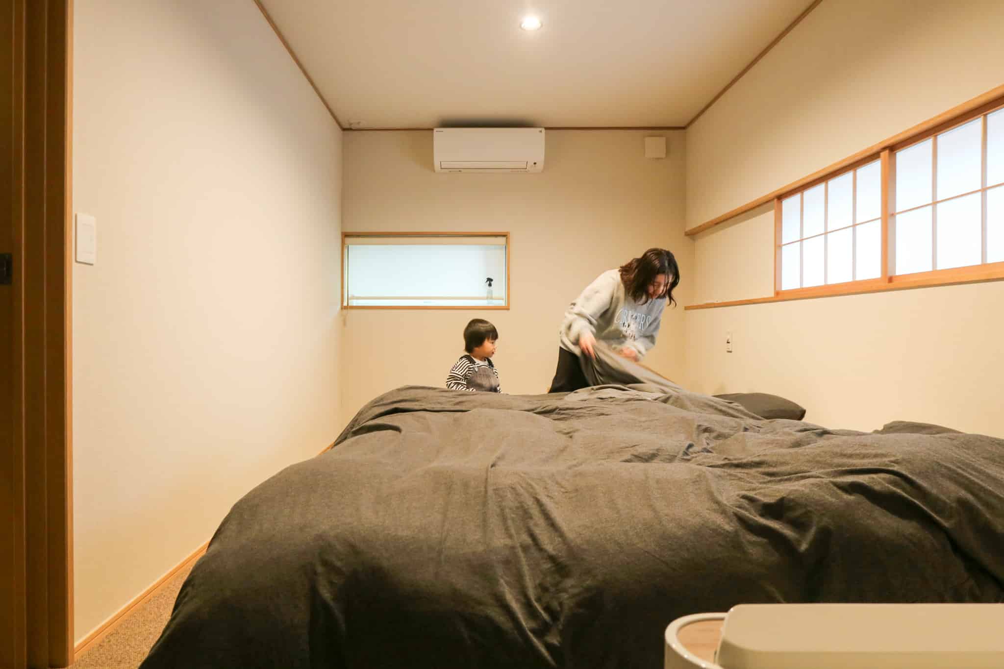 ご主人 : 本物の木が好きだったので、ムクフロアや天井に板を張ったり、寝室の仕上げ材料に本物の木を使って生活の中に木の温かみを感じれるようにしました。