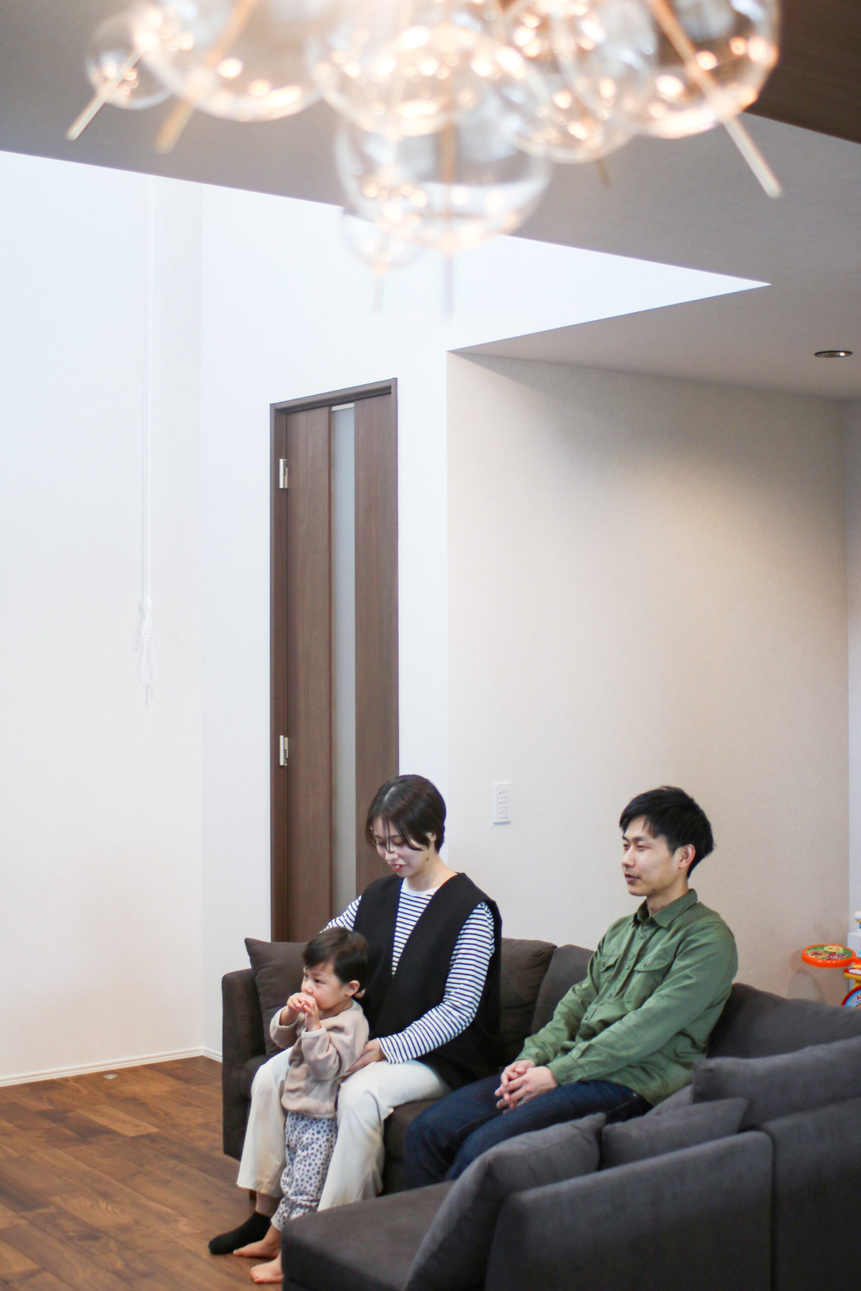 奥様 : 広くとってもらったファミリークロークと、吹き抜けリビングの開放感が特に気に入っています。また、家事動線にこだわり家事が楽になりました!私のこだわりが強すぎてたくさんわがままを言いましたが、設計士さんや現場監督さんがこだわりを叶えるためにたくさん考えて提案をくださりありがたかったです。