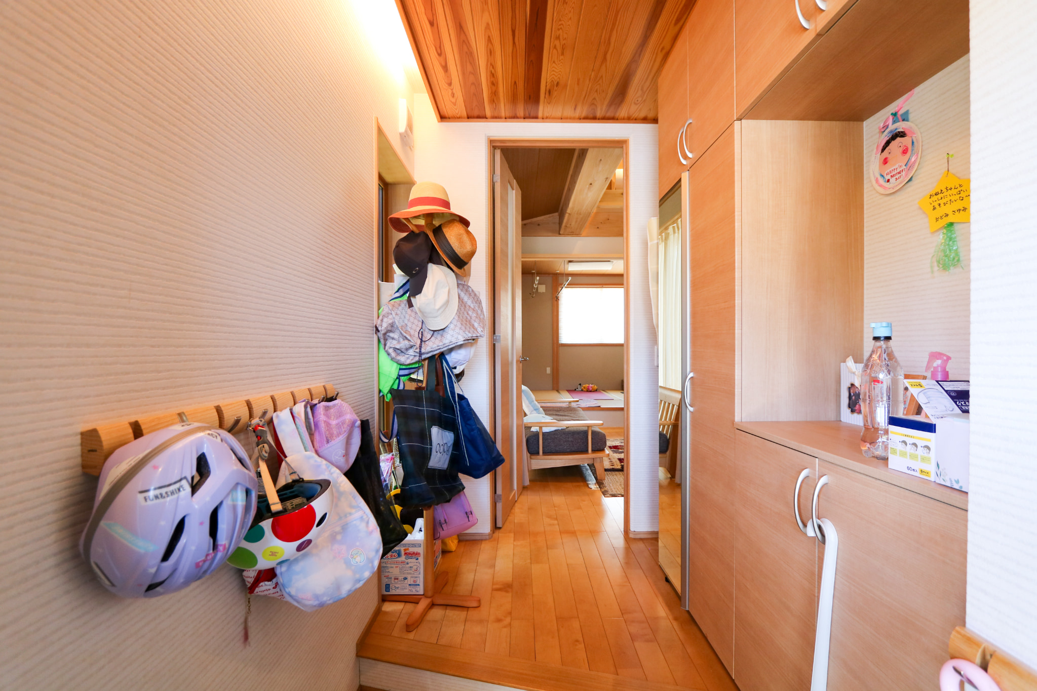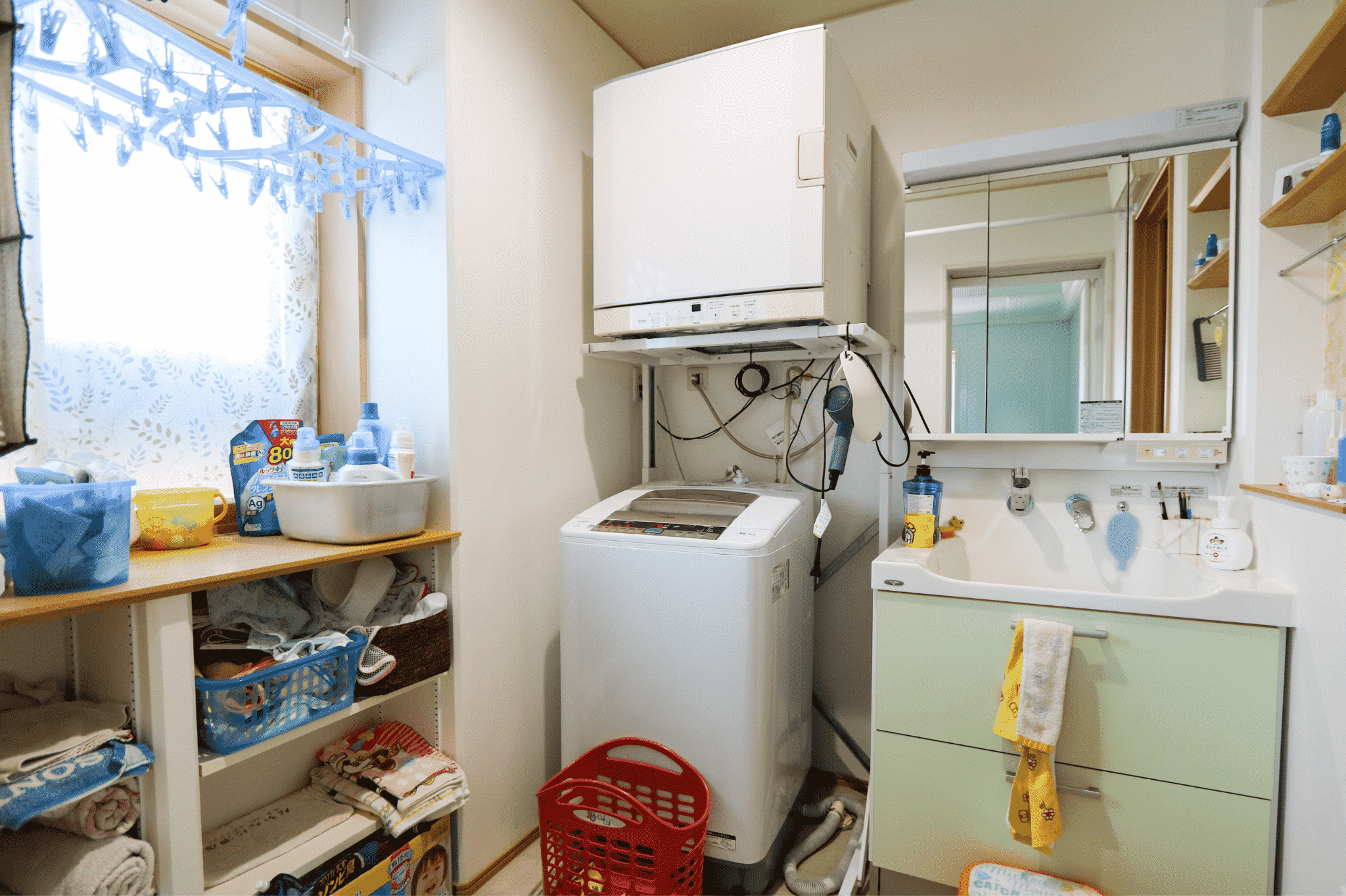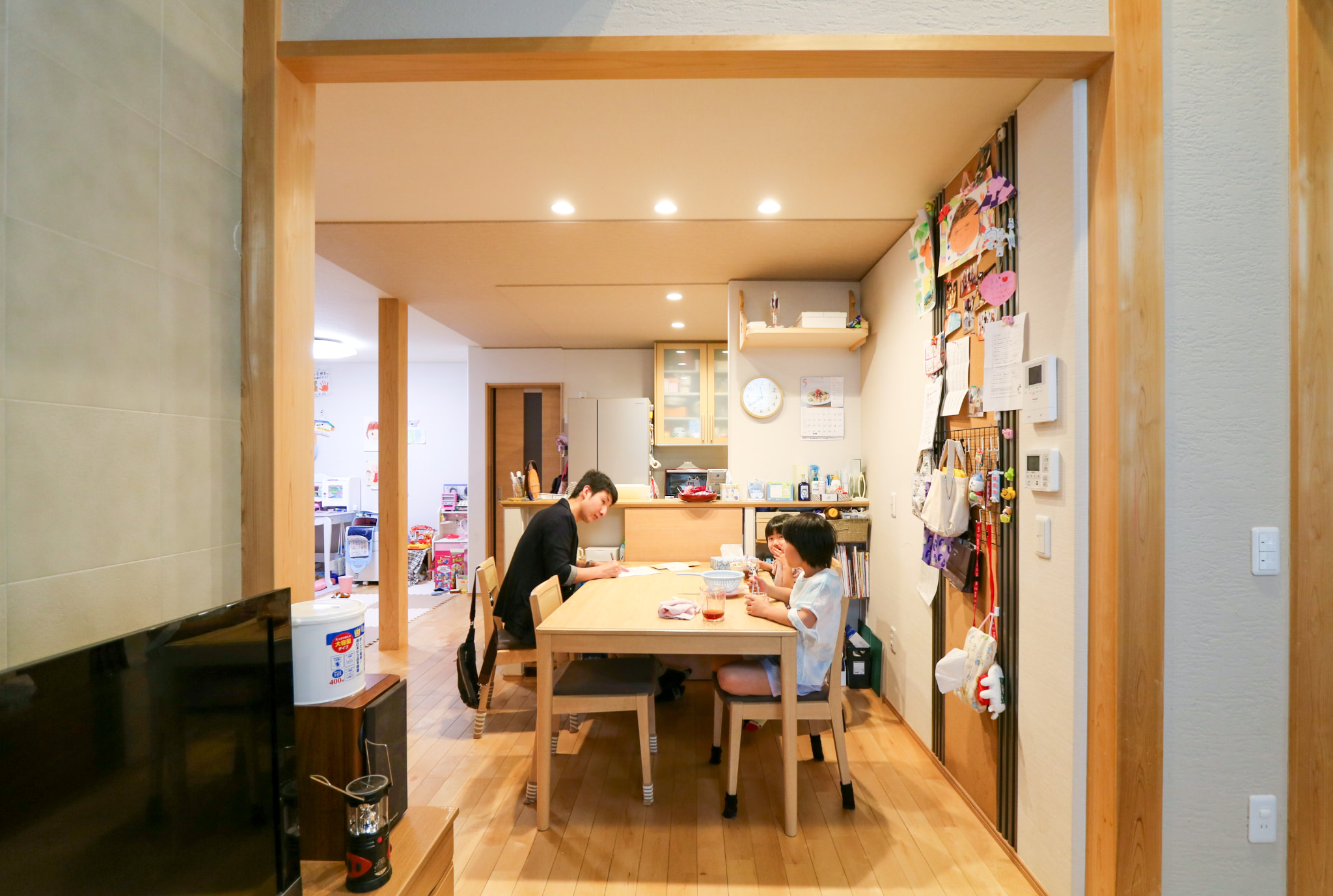 LDK、寝室、子供部屋、水回りがワンフロアにあることで移動のストレスがなく、家族の雰囲気を近くに感じることができています。奥様 : キッチン周りの設備を決める際、IHコンロとも迷いましたが、やっぱり料理の時火が見えた方がよかったので、ガスにしました。その際、ガス衣類乾燥機「乾太くん」も導入しました。「乾太くん」のおかげでタオルはふかふかで、拭いても繊維が残らず快適です。