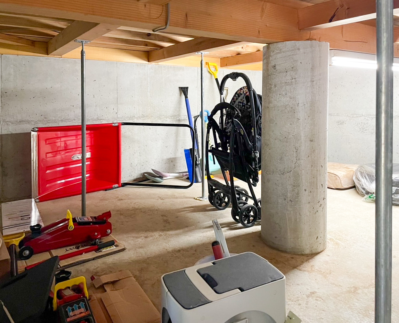 ご主人 : 基礎を高基礎にしたことがこだわりです。外部からの収納部分にはタイヤや除雪用のスコップを収納しています。敷地に余裕がなかったので、とても助かっています。