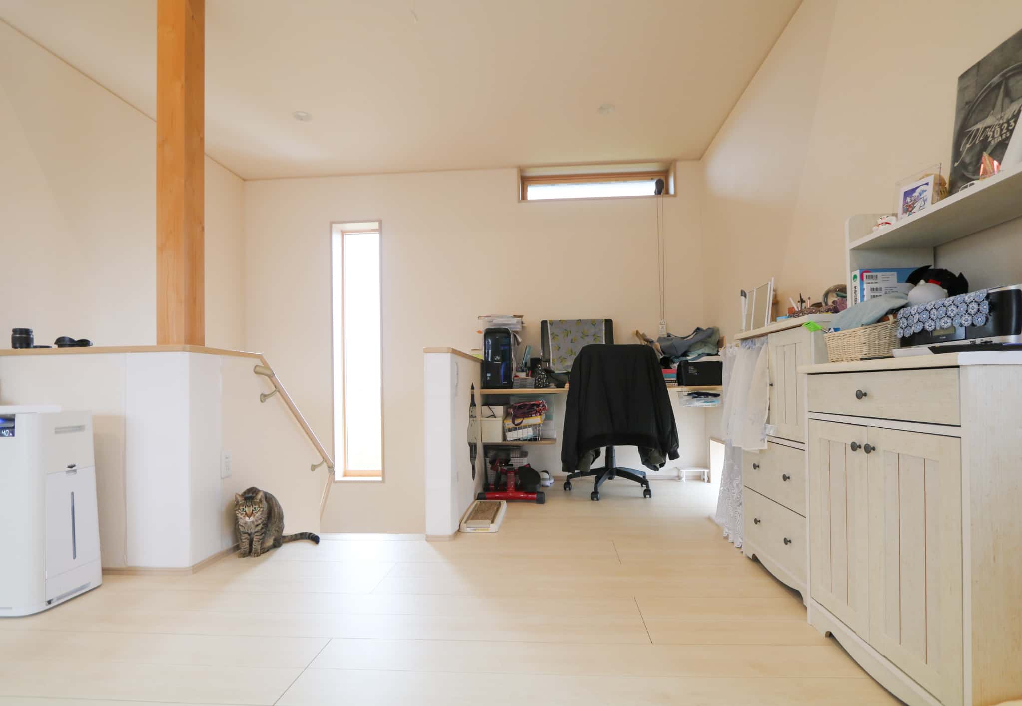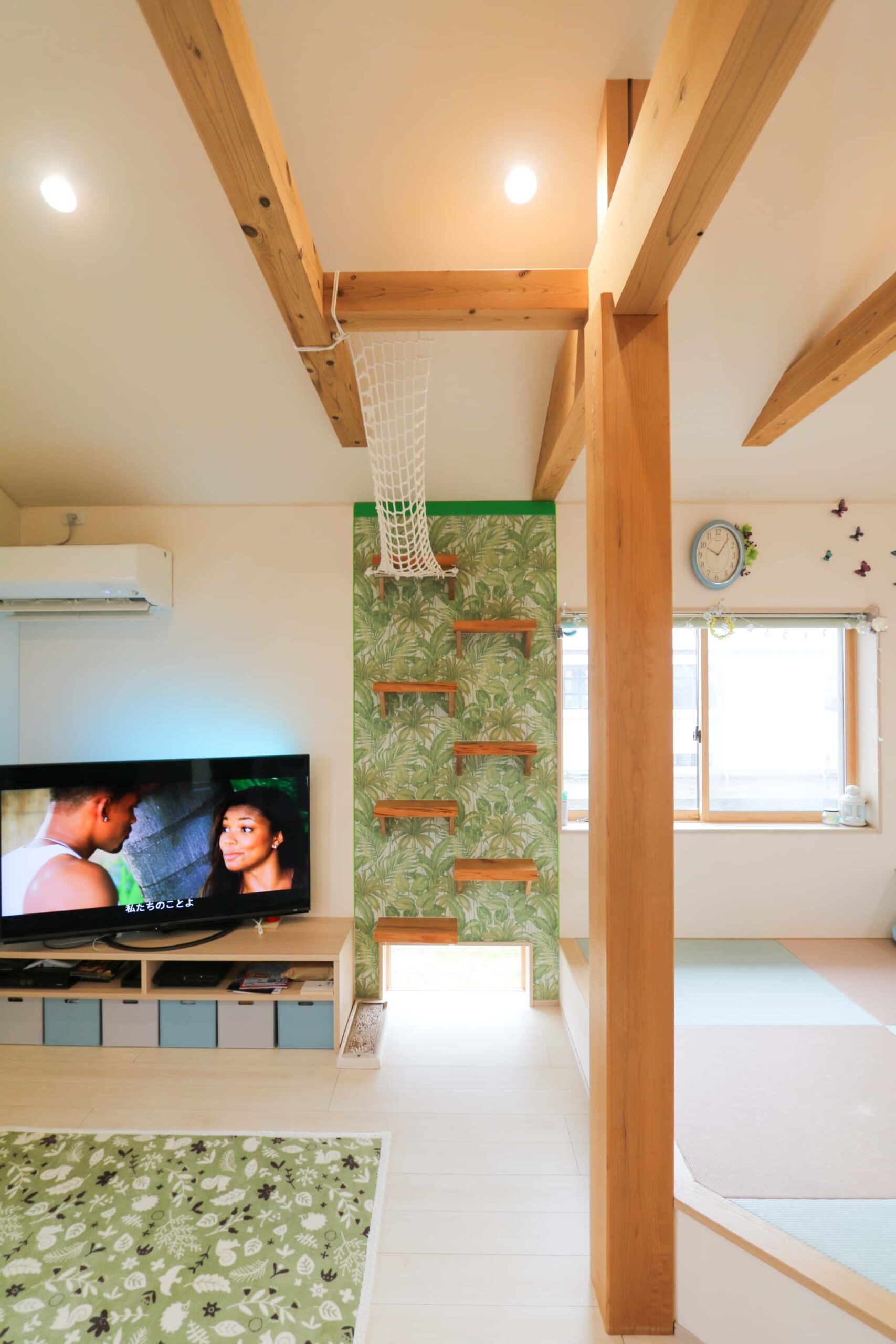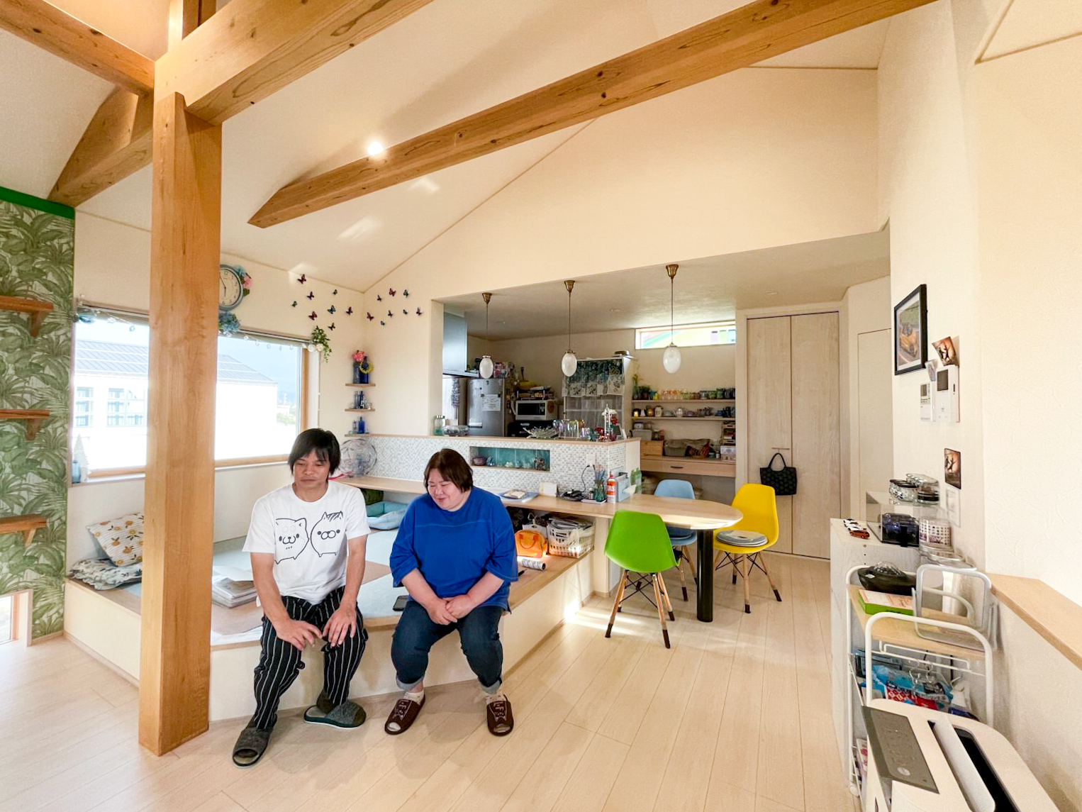 奥様:2階にリビングを持ってくることで、吹き抜けのスペースをムダにする必要がないんです。飼っている猫が梁に登れるようにしたかったので、吹き抜けは作りたかったし、2階リビングにして良かったと思います。