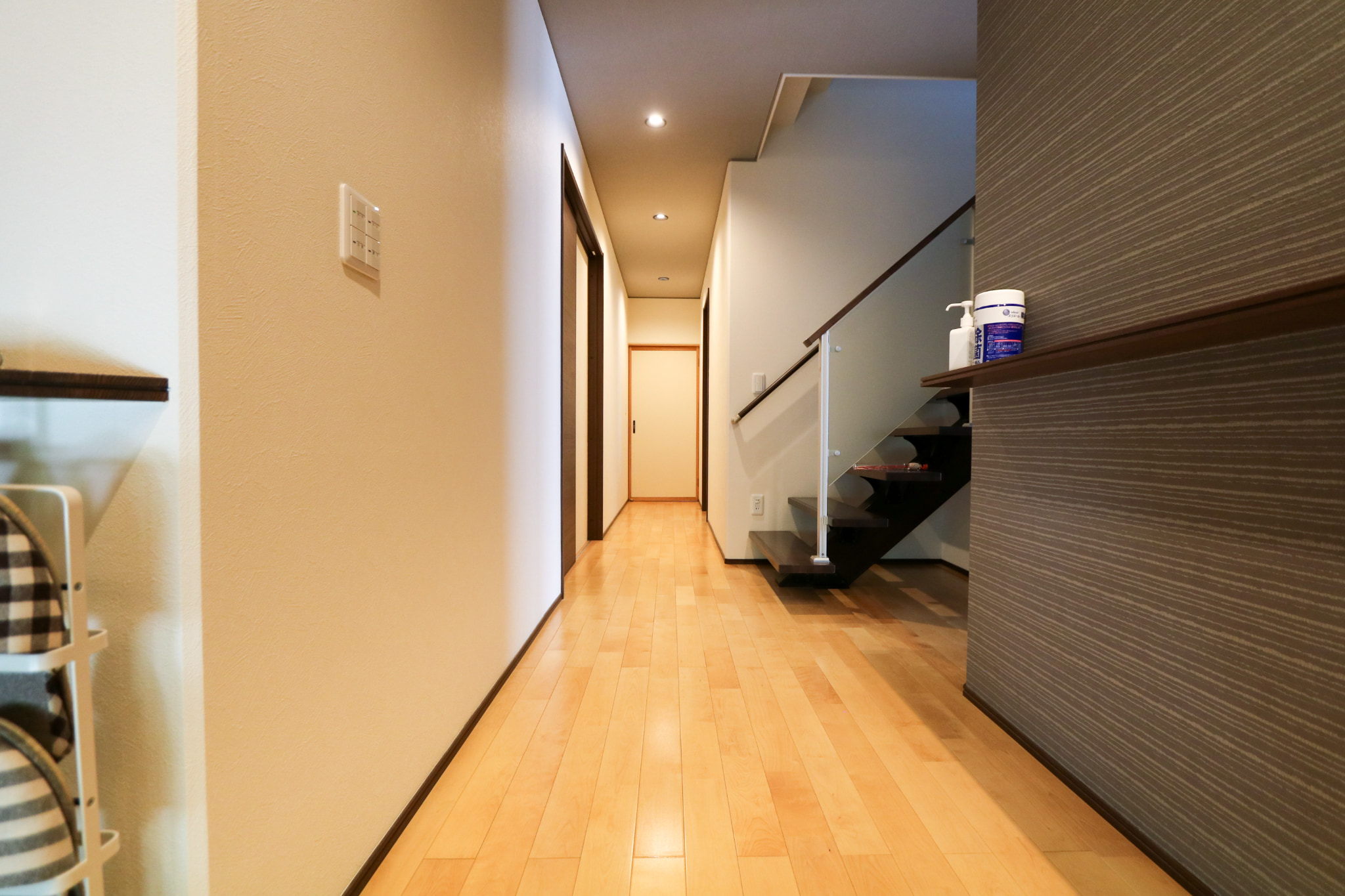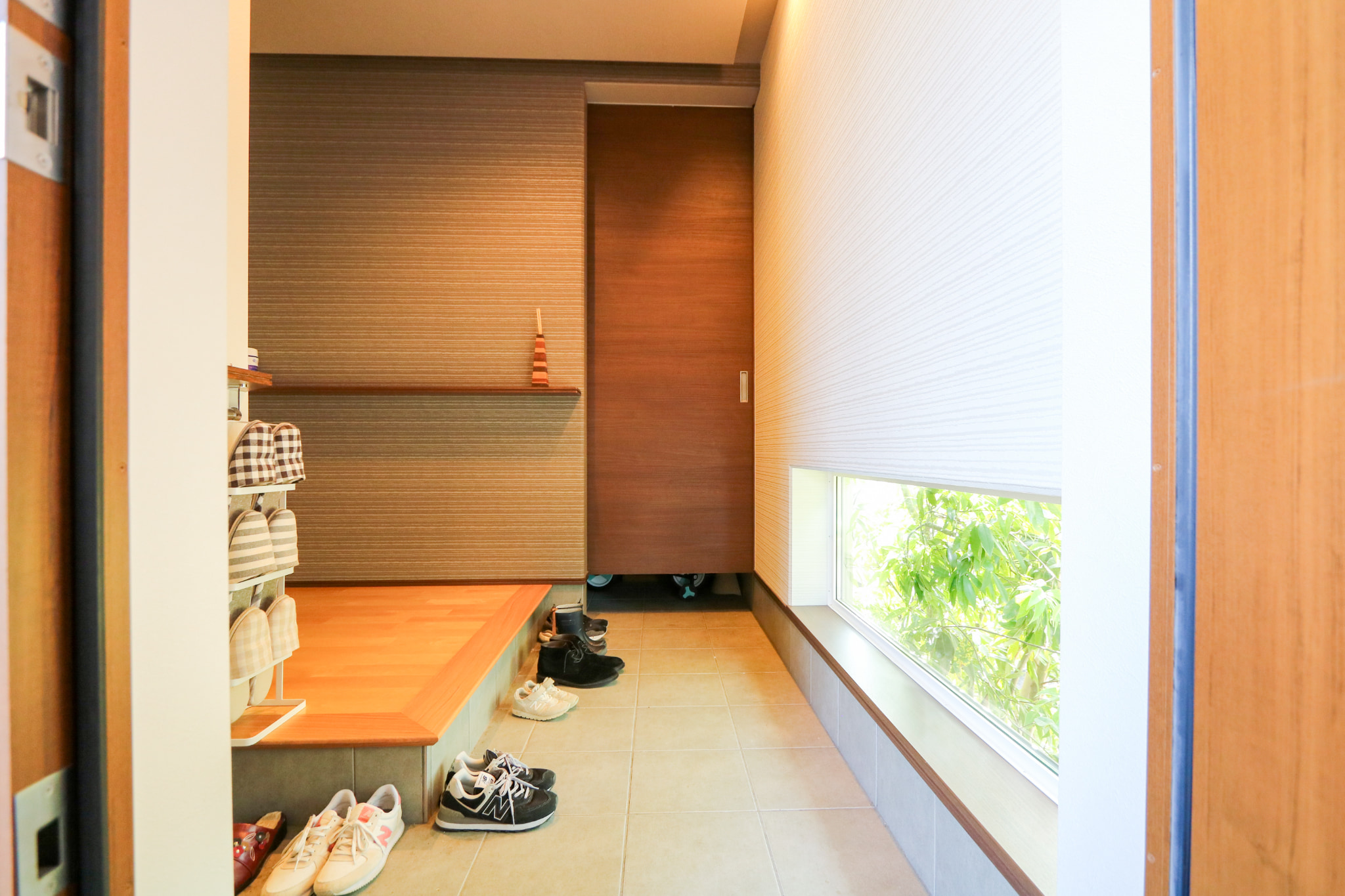 奥様 : そろそろ持ち家を…と、考えていた時に当時住んでいたアパートの近くにひまわりほーむさんのモデルハウスがありました。モダンな感じで素敵な外観、玄関の和モダンな雰囲気が夫好みでこんな家に住みたい!とひまわりほーむさんを選びました。また、省エネ性、耐震性が第三者機関の評価で全棟高評価を取得しているという点も大きな決め手となりました。